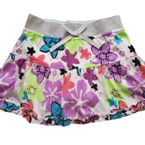 Basic Editions Kids Girls Floral Glitter Waistband Ruffle Hem Skirt Sz M/M (7/8)