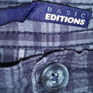 Basic Editions Men's Blue Tartan Cargo 100% COTTON Plaid Summer Shorts Size L