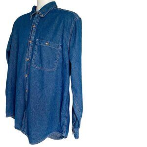 Basic Editions Men's Cotton Denim Long Sleeve Button Down Shirt Large