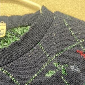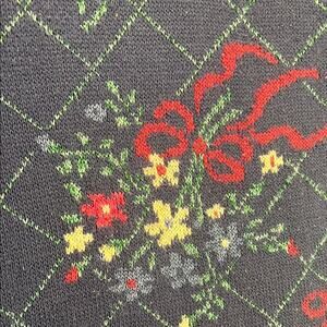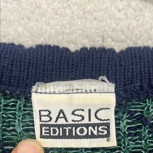 Basic Editions Navy Green Floral Knit Sweater Scalloped Crewneck Small/Medium - No size tag please check measurements
