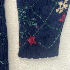 Basic Editions Navy Green Floral Knit Sweater Scalloped Crewneck Small/Medium