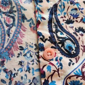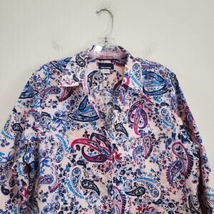 Basic Editions Paisley Boho 3/4 Sleeve Button Down Dress Shirt Work Wear Sz XL
