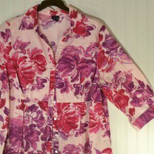 Basic Editions, Pink Purple Floral Button Up Shirt, 3X