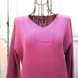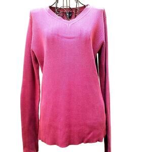 Basic Editions Pullover Sweater Size L / G Purple Soft 100% Cotton Knit Classic