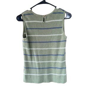 Basic Editions Sage Green Striped Ribbed Tank Top Size L Fits S/M Y2K 90s