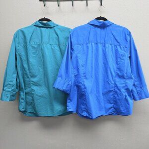 Basic Editions Shirts Womens 2X Blue Teal 3/4 Sleeve Popover Stretch Lot 2