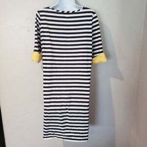 Basic Editions Small Navy Blue & White Stripes Shirt Dress Yellow Cuff