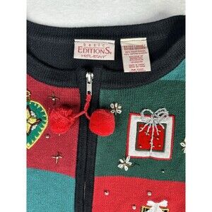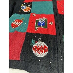 Basic Editions Ugly Christmas Sweater Sz XL Vintage Beaded Ornaments Y2K Zip