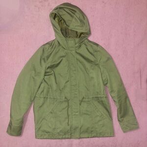 A Casual Outdoor Essential. Versatile green shade, featuring a Practical hood and a full-length zipper for Easy wear. Designed for outdoor adventures, it offers a Relaxed Sleek fit and is Ideal for rain, wind or a little chill in the air. This jacket combines Functionality with Style.