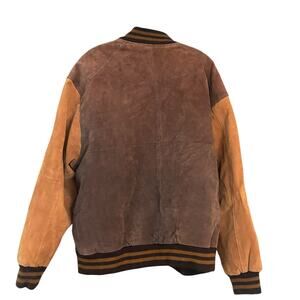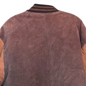 Basic Editions Varsity Jacket Vintage XL 90s Bomber Leather Suede Brown Zip up