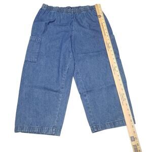 Basic Editions Vintage Denim Capri Pants Sz S Elastic Waist High Rise Pockets