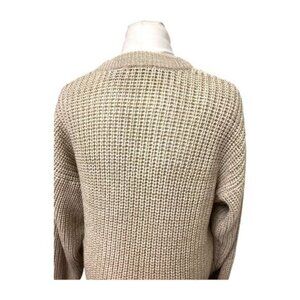 Basic Editions Vintage Mens Loose Knit Crewneck Sweater, Tan, size M