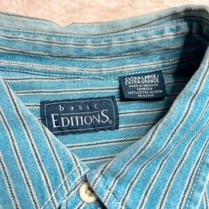 Basic Editions Vintage Striped Button Up Shirt Long Sleeve Blue Tan Men's XL 90s