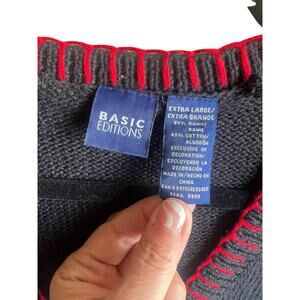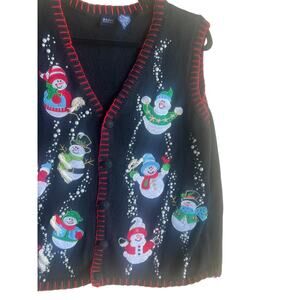 Basic Editions Vintage Vest Snowman & Pearl Embellishments Sweater Black XL