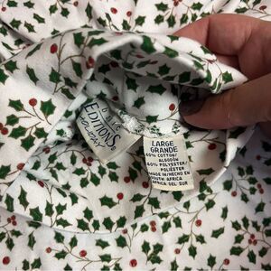 Basic Editions White Green Red Mistletoe Print Long Sleeve Tee Size L