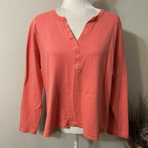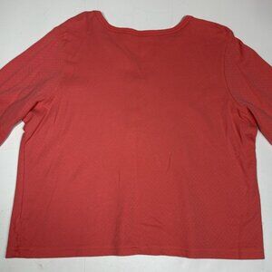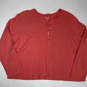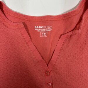 Basic Editions Women Long Sleeve Henley Top Blouse Pink Salmon 100% Cotton Sz 1X