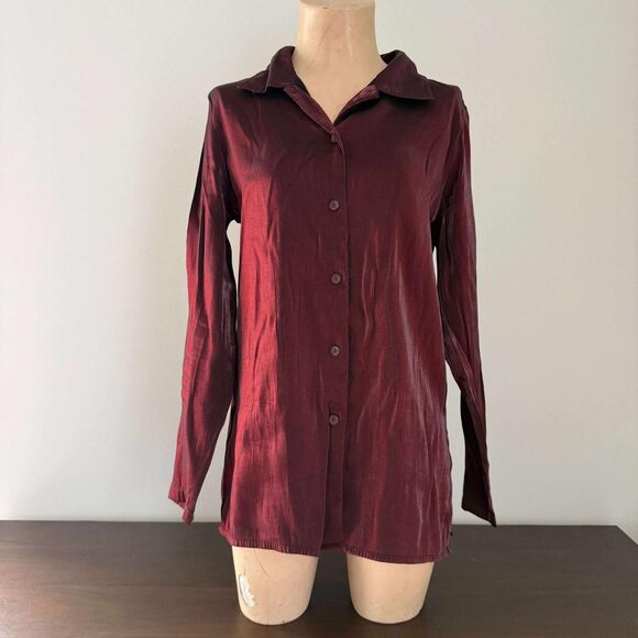 Basic Editions Women's Burgundy Metallic Button Up Shirt
