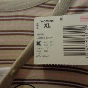 Basic Editions Women's Layered Henley Short Sleeve Striped Top Size XL N…