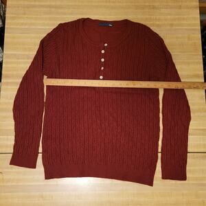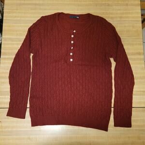 Basic Editions Women's Medium Henley Cable Knit Sweater Burgundy Long Sleeve