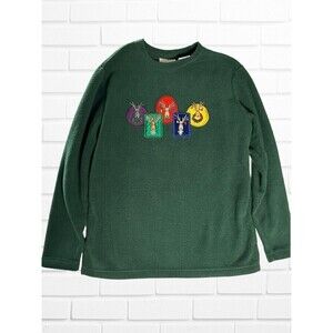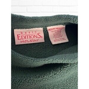 Basic Editions Women's Medium Sweater Cozy Fleece Green Reindeer Holiday