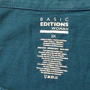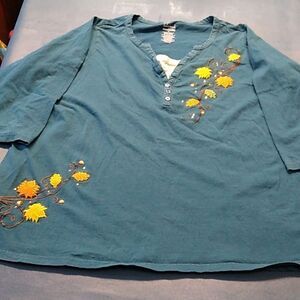 Basic Editions Women's 2XL Cotton Leaves & Acorns on vines Long Sleeve Top