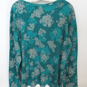 Basic Editions green floral striped 100% cotton long sleeve tee *Sz 1X*