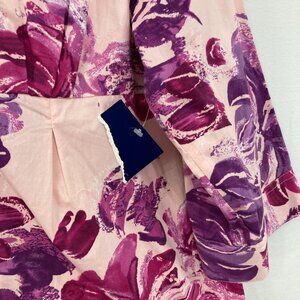 Basic Editions size 3X Pink Purple Floral 3/4 Sleeve Baby Doll Button Up Preppy