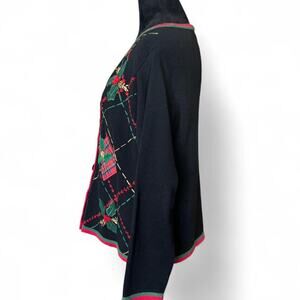 Basic Editions vintage Holiday Black Plaid Gift Embroidered Cardigan Sweater L