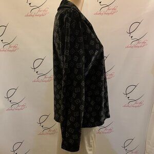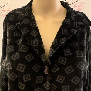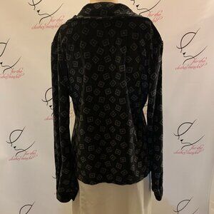 Basic Equipment. Sz Medium. Button up. Long Sleeve Velour Shirt or P.J.s. Center back 22.5". Sleeve 23.5". Bust 20.5/41". Excellent pre-loved condition. No spots, tears or damage.