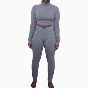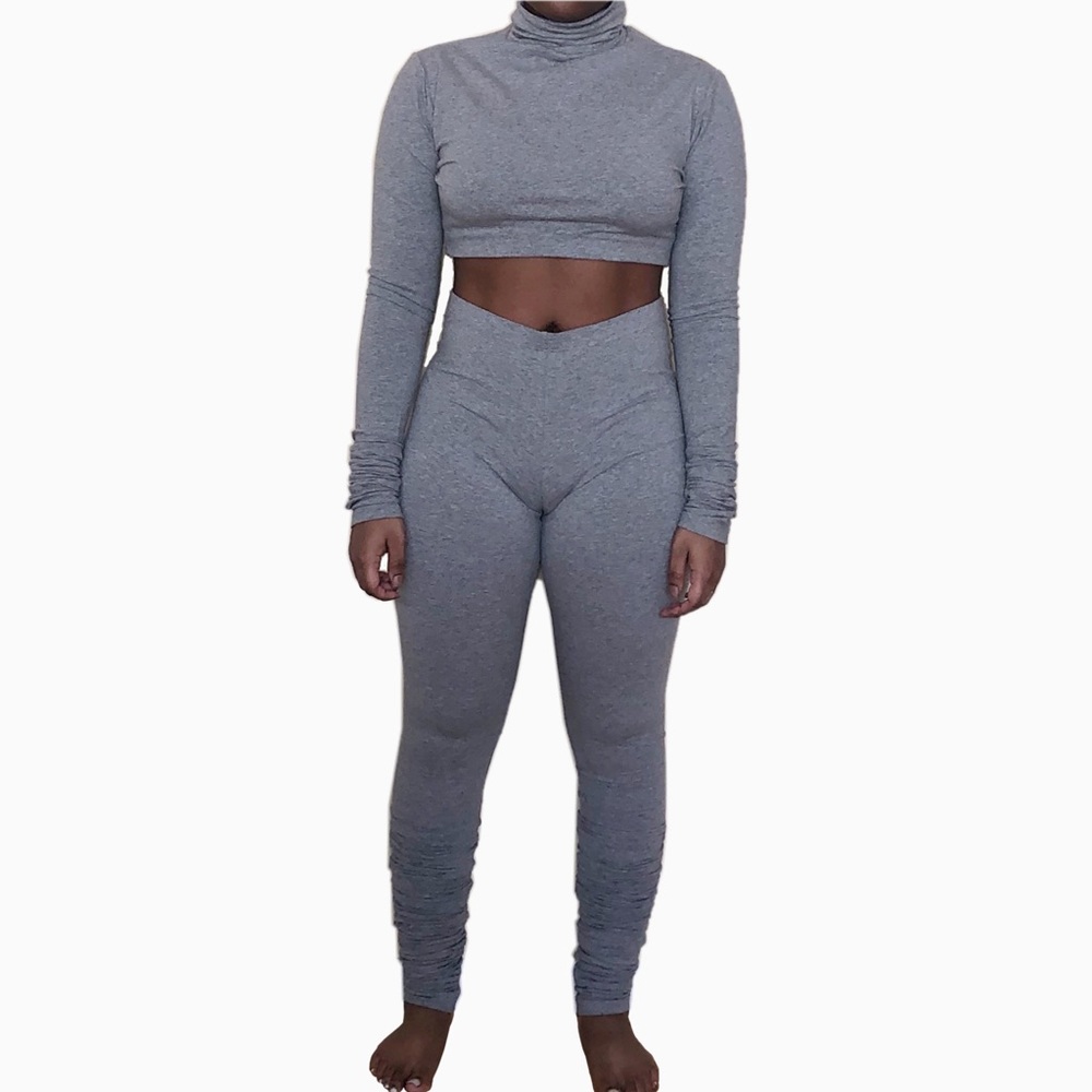 Basic Gray Set. Top is Turtleneck Crop Top; Pants fit like leggings at the top & have the scrunch leg effect at the bottom. I can customize the length of the top for you. Can also pair with my off the shoulder crop top & bandeau top found on my page. Super comfy. Sizes S-L; This is a size M in the pictures, I’m size S/M; Can be purchased separately!