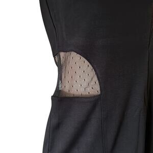 Basic House Black Knit Dress Juniors Size Small Sheer Dot Insets Cutouts Mini
