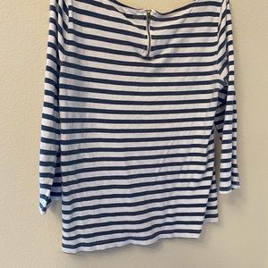 Blue and white striped tee with back zipper