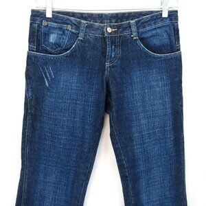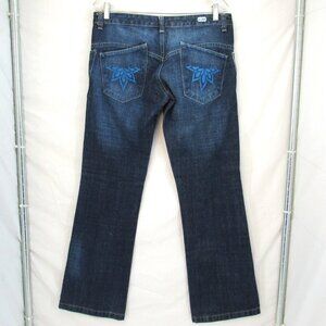 Basic Law Women's Button Fly Wide Leg Low Rise Embroidered Pocket Blue Jeans 8