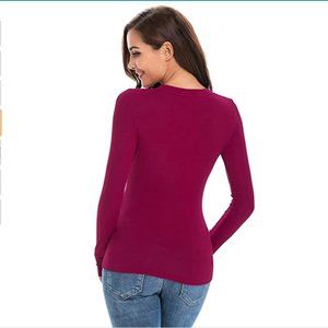 Basic Long Sleeve Crew Neck Comfy Layering Slim Fit Stretch Henley Tees Shirts T