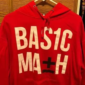 Here is a mens large size basic math sweatshirt. the brand is not super popular but it is perfect for someone who has a nerdy personality like myself. the overall condition of the sweatshirt is 7/10 and that’s just due to age.