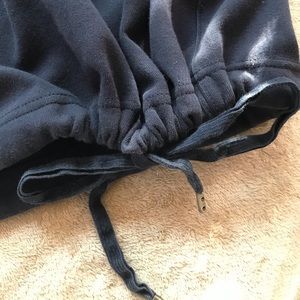 J crew boxy navy t with drawstring bottom. I like the drawstring because it gives you a cute tuck without having to stuff a bunch of clothing into your pants. Material is thick.