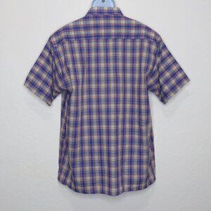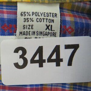 Pre-Owned Condition! 65% Polyester/35% Cotton. Handsome Multicolor Plaid Single Chest Pocket Shirt with Wood-Like Buttons to Match.