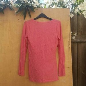 Back to basics. This pink basic long sleeve top has two slits on both sides shown in picture 2. Very soft and comfortable, essential for pairing the the cold weather coming this fall. In excellent condition. 52% polyester 35% cotton 13% rayon.