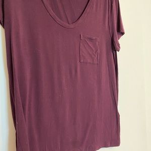 Basic pocket tee. Stretchy material, loose fit. Dress up or down. Maroon color.