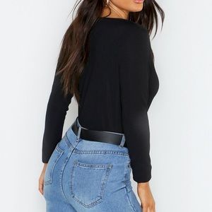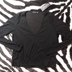 A basic long sleeve rib tee with a deep plunge collar. NEVER WORN!