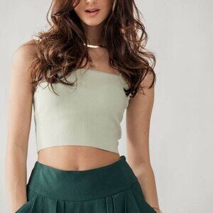 SPAGHETTI STRAP RIBBED KNIT CAMISOLE CROP SQUARE NECK TOP 75% VISCOSE 25% PBT