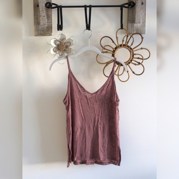 this basic tank is perfect for summer, lightly worn. no tears or stains. Really lightweight! fits XS/S