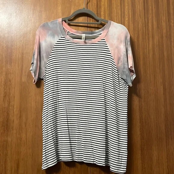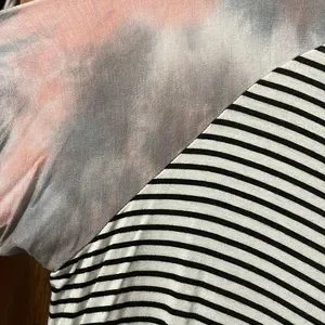 NWOT. Very stretchy material. Black and white stripes with blue/gray/light pink tie dye sleeves. Smoke and pet free home.