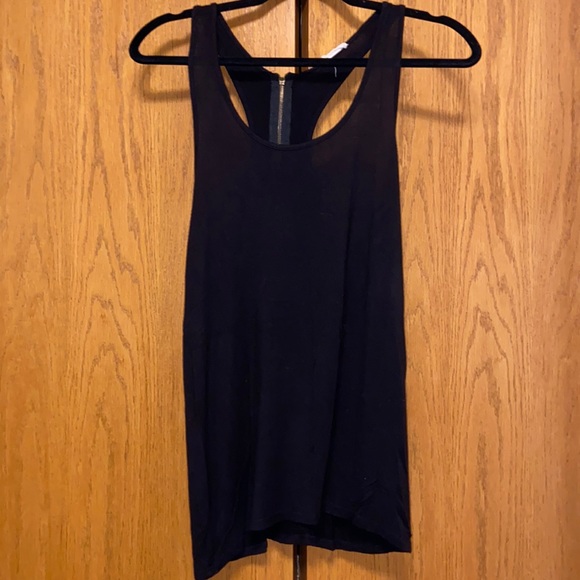 Basic flowy scoop-neck tank top. In excellent condition! Has zipper on back. 95% rayon 5% spandex
