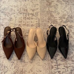 Explore versatile style with these 3 tops. All in size small except the tan is in a size Medium. Perfect for any occasion.