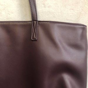 Anna Basic Tote Bag. Maroon. Rendered in smooth faux leather with a snap closure, complete with an inner pocket and dual handles.