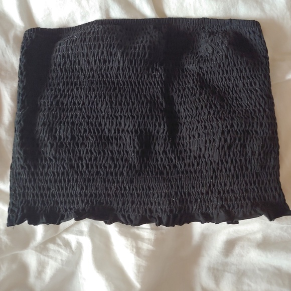 Basic vlack tube crop top from Garage. Very stretchy and stays up well, it's sewn in a way that there's plenty of room in front in the chest area.