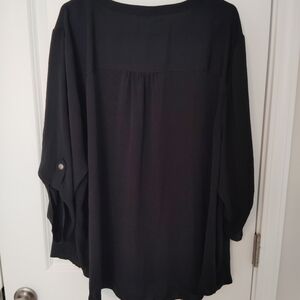Check black blouse, mid arm length, no fancy features except the button up sleeves. Flowy and breathable and thin kinda fabric. no holes, no rips. Brand new.