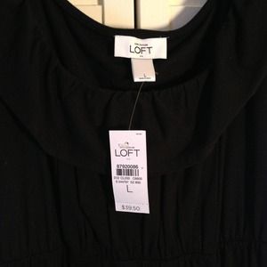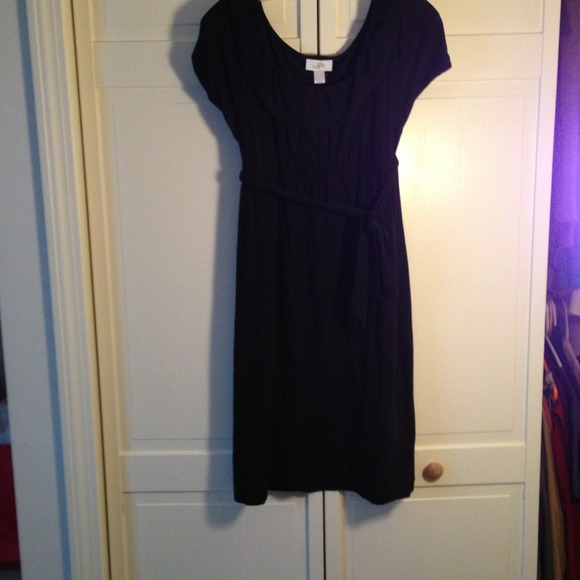 Perfect cotton little black dress! So soft and comfy and can be dressed up or down! Elastic at empire waste w long black tie-belt. I am 5'6", the dress hits a few inches above my knee.