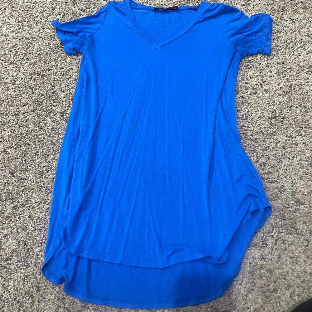 Basic blue tunic, longer in the back